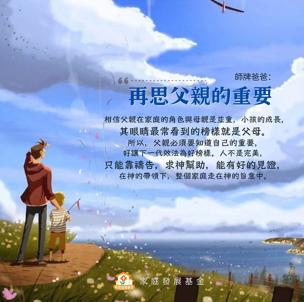 母親在家庭中的角色是舉足輕重,家中大大小小的事都是母親去打點。相信原因在於國家遵循著傳統性別的職責分配,用單薪家庭和全職主婦的模式,也奠定了相當穩定的社會基礎和生育率。自從兩性上的觀念趨向平等,特別在北歐的瑞典,父母在家庭的角色都會有所改變,父親代母職開始普遍。不過,我並非否定在華人世界中,但改變是比較不明顯。 可是從信仰的角度來思考父母在家庭的角色。聖經創世記提到起初神造男造女,基本是認同「男女平等」。只是聖經也教導男性是「頭」,這「頭」不是說神的教導有矛盾,而是在帶領家庭上男性是擔當重要角色;而有一個很重要的要求,就是他要愛妻子如同愛自己。換言之,在帶領上不是強勢,而是所做的決定都是以「愛」出發。所以,聖經提到「頭」不是權力或地位,而是有以下三方面: 1. 信仰的帶領:對基督教的群體,在整個世界教會的情況都是男少女多。對父親在家中成為信仰上的帶領者真的較為困難,這也是教會需要正視的地方,怎樣能使男性進入教會是很重要的課題。另外,我相信已經是基督徒的男性更要在神的話語上下點功夫,能夠在家中分享神的話,成為屬靈的帶領者。 2. 生活的榜樣:怎樣按神的話行事為人?父親在家中是否真的活出「愛」?這是重要的榜樣,更加需要「表裡一致」。 3. 需要的配合:因為現代已經趨向「男女平等」,家庭中的角色也開始分得不太清楚。家務和照顧小孩是否一定是母親的責任?廚房是否只能母親踏足?我相信這些已成過去。現代的父母應該懂得如何發揮自己所長,按需要盡量彼此配合,這才是父親要學習的方向。 相信父親在家庭的角色與母親是並重,小孩的成長,其眼睛最常看到的榜樣就是父母。所以,父親必須要知道自己的重要,好讓下一代效法為好榜樣。人不是完美,只能靠禱告,求神幫助,能有好的見證,在神的帶領下,整個家庭走在神的旨意中。 |