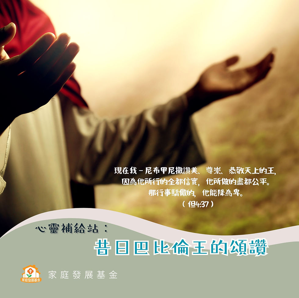 「現在,我尼布甲尼撒讚美、尊崇、歸榮耀給天上的王,因為他的作為正直,他的道路公義;那些行為驕傲的人,祂能貶低。」(但4:37)[環球新譯本]